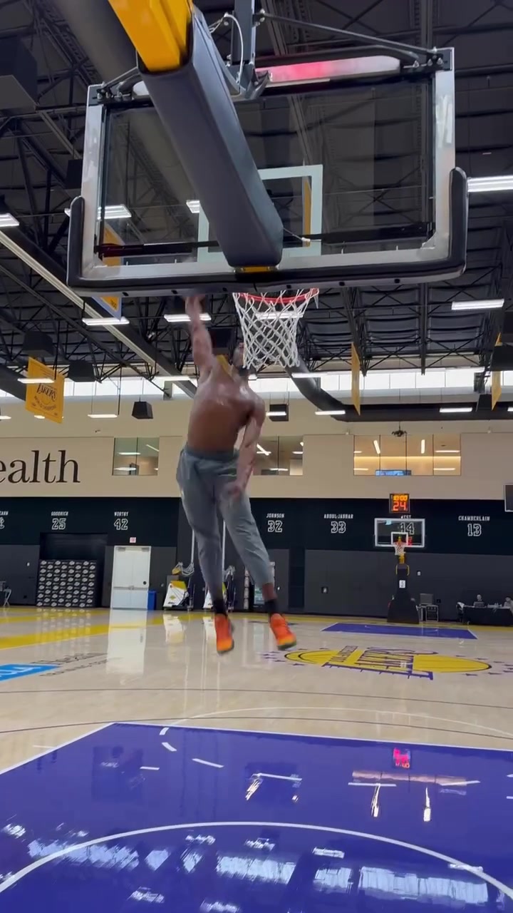 极度舒展!湖人新秀阿杜自抛自扣 垫步起飞单臂轰炸篮筐!